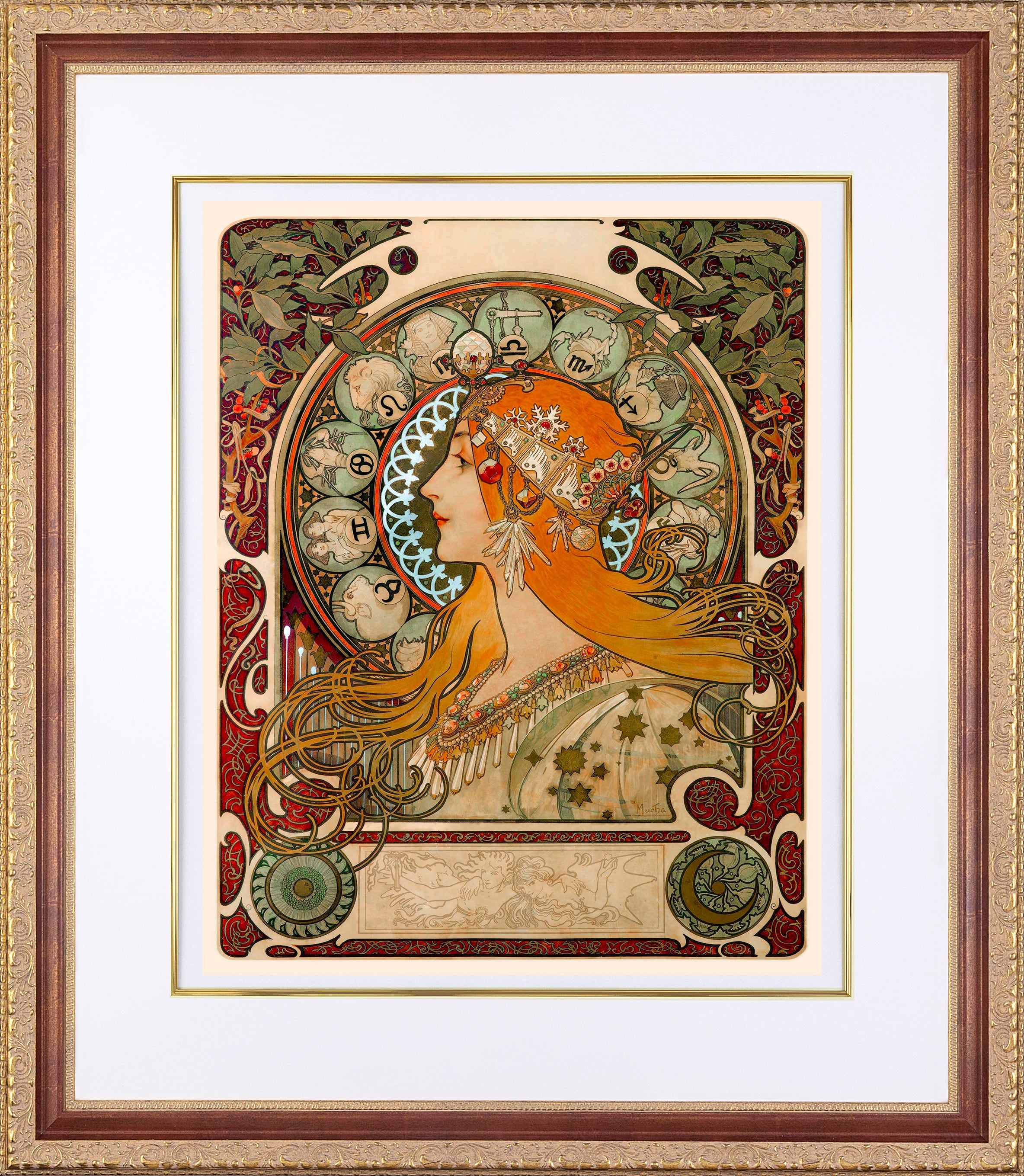 ミュシャ『ゾディアック』 リトグラフ・送料無料・新品額装・UVカットアクリル仕様
