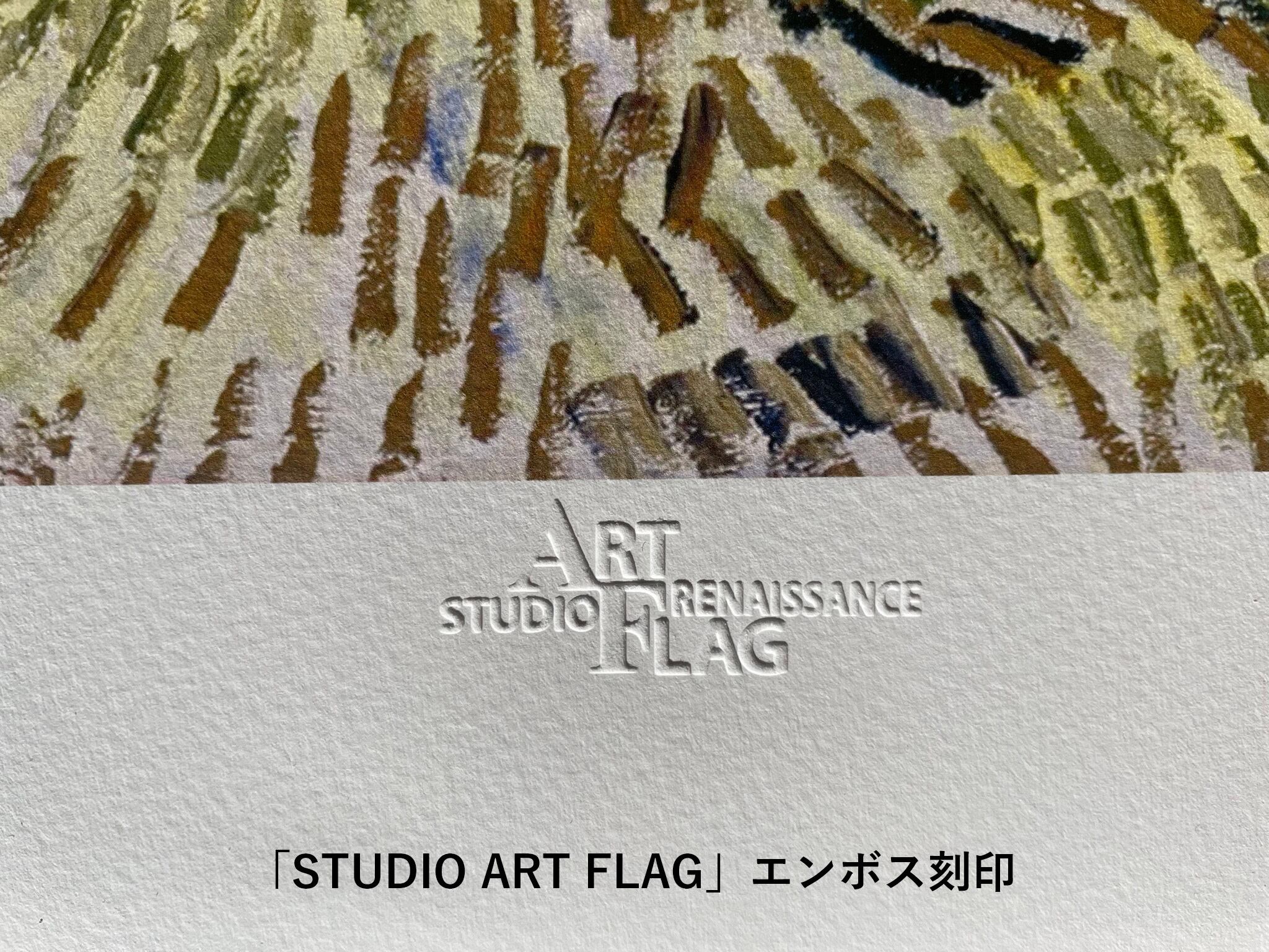 ・作品の中央下部には、「STUDIO ART FLAG」のエンボス刻印