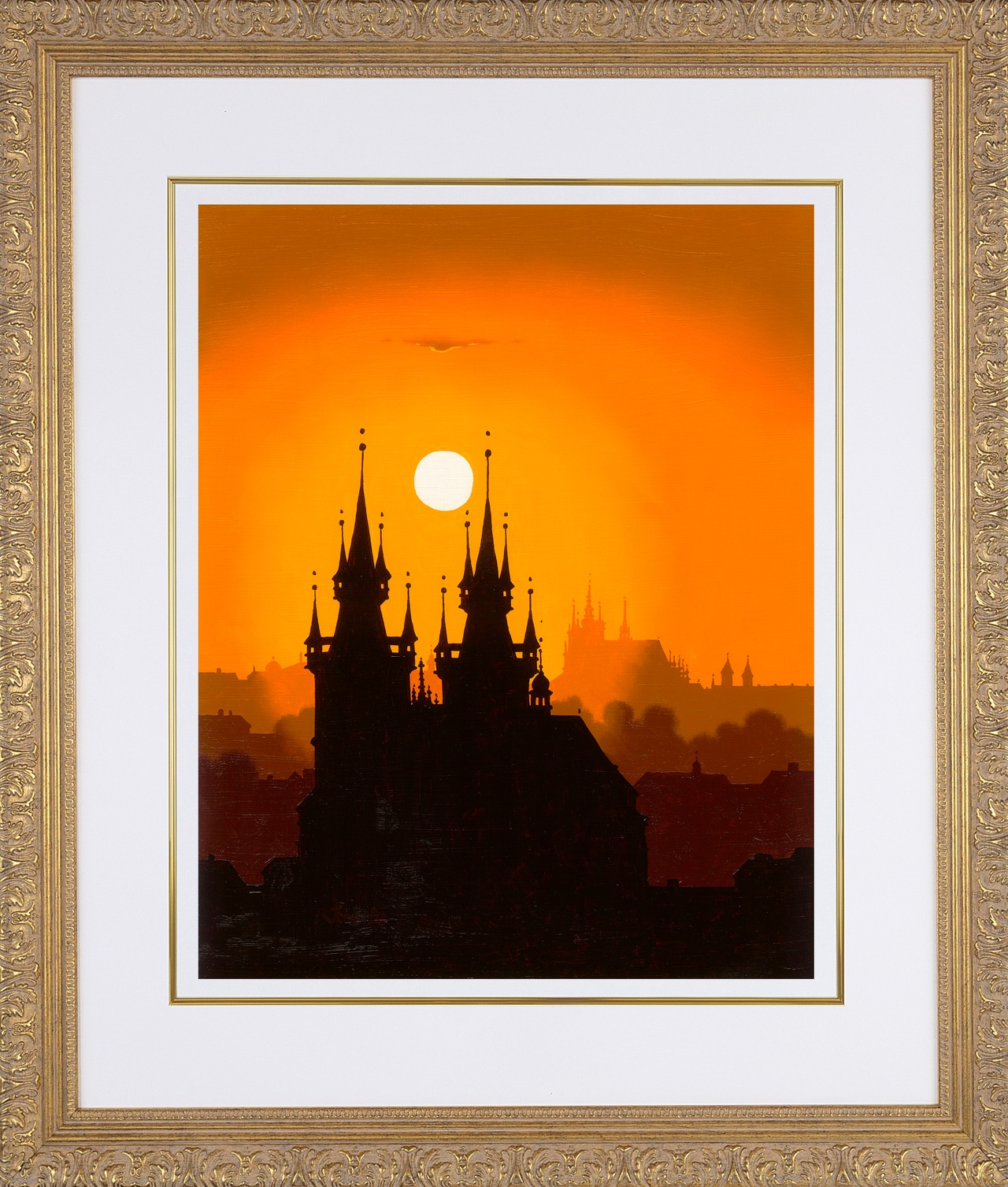 イローシェック『プラハの夕べⅠ』 リトグラフ・送料無料・新品額装・UVカットアクリル仕様