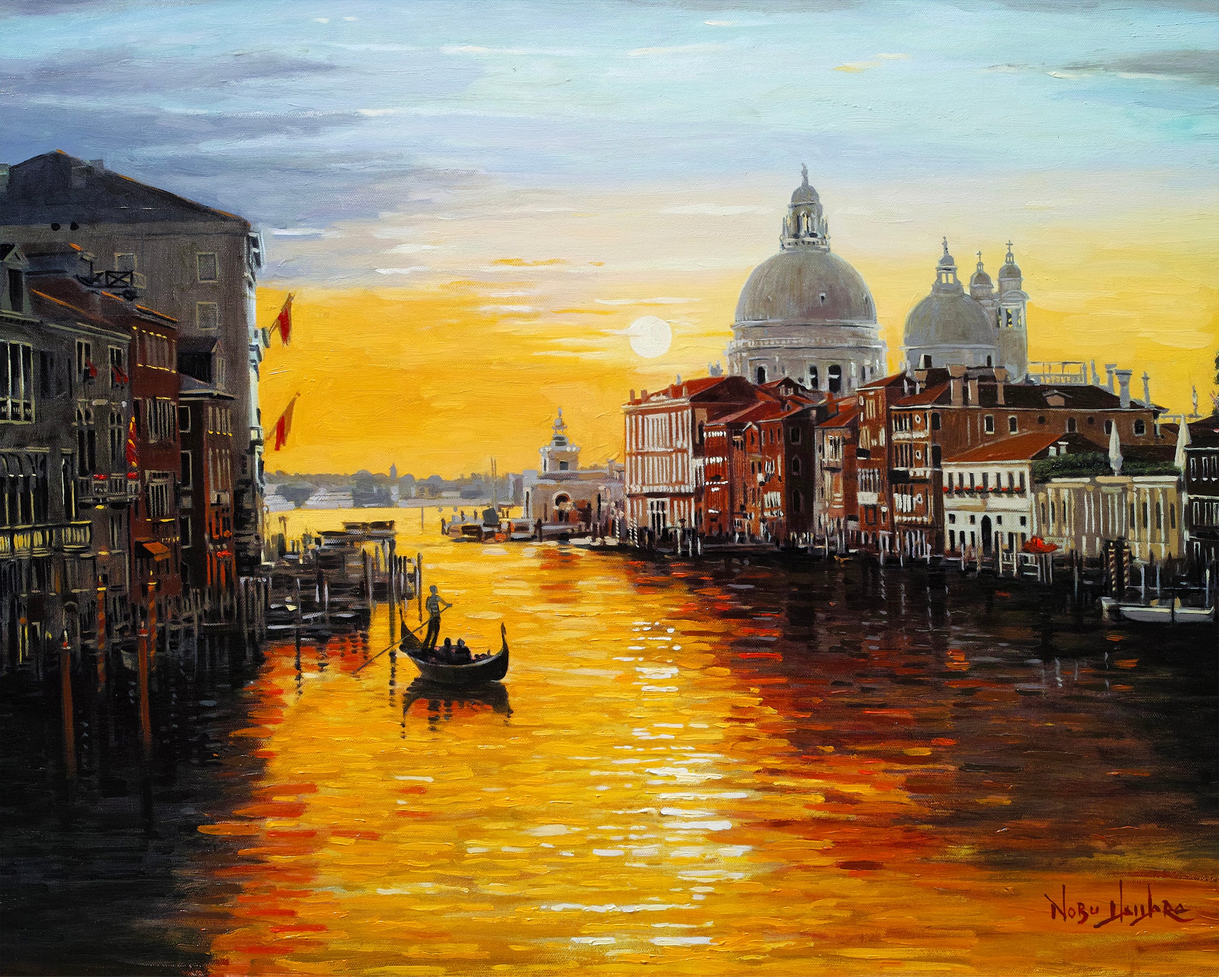 ノブ ハイハラ『夜明けのヴェニス』 リトグラフ・送料無料・新品額装・UVカットアクリル仕様
