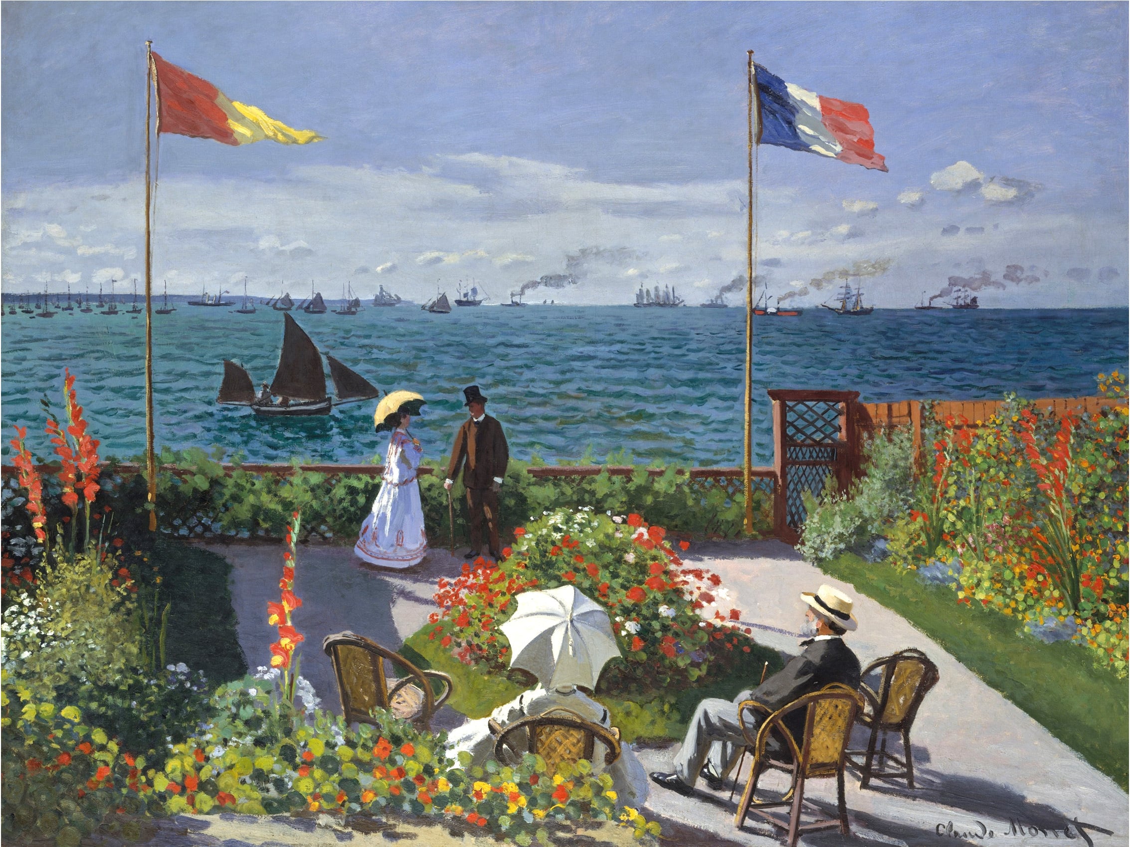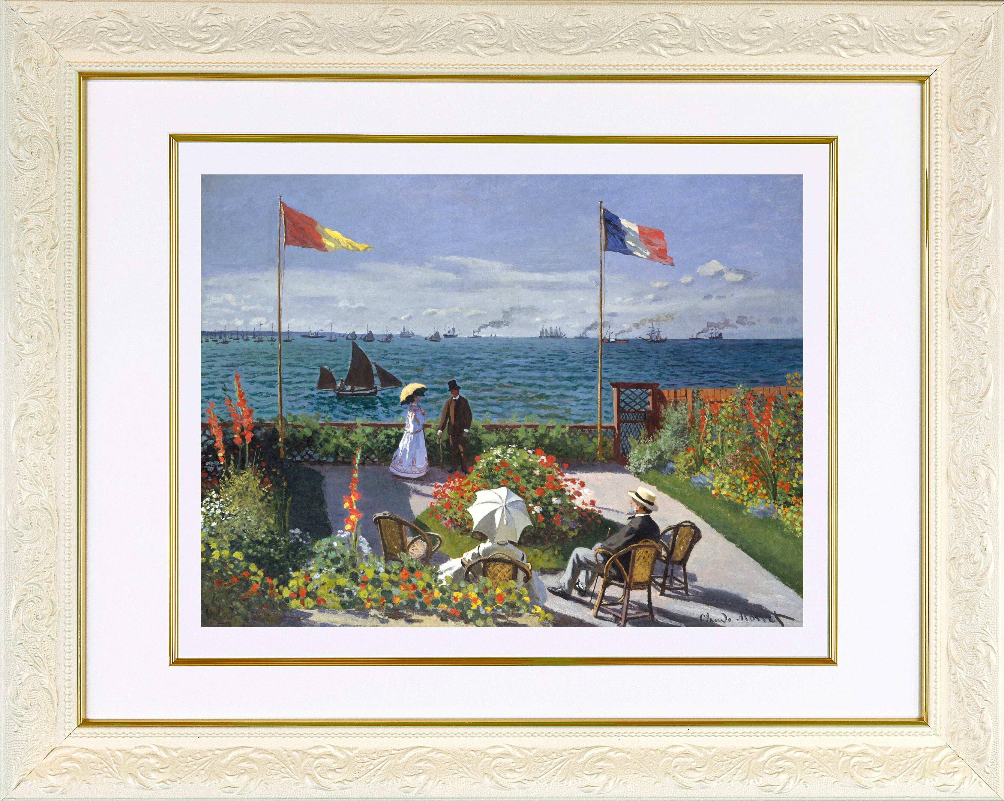 モネ『サン=タドレスのテラス(5号サイズ)』リトグラフ・送料無料・新品額装・UVカットアクリル仕様