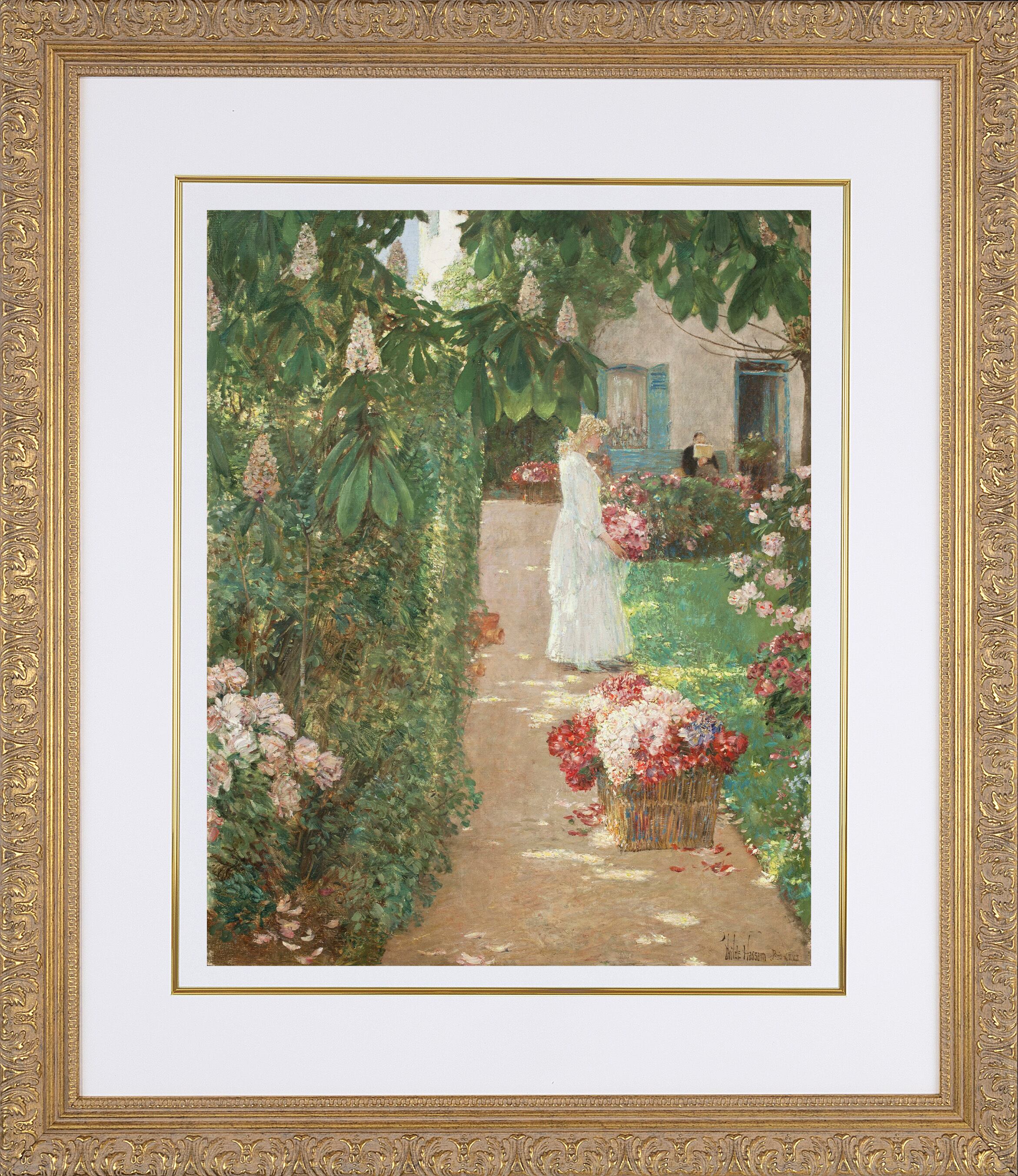 チャイルド・ハッサム『花摘み、フランス式庭園にて』リトグラフ・送料無料・新品額装・UVカットアクリル仕様